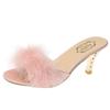 Large43 Мюли Сандалии Женские Летние Уличные Тапочки С Квадратным Носком На Высоком Каблуке Офисные Женские Перьевые Шлепанцы Шикарная Классика Меховая Обувь