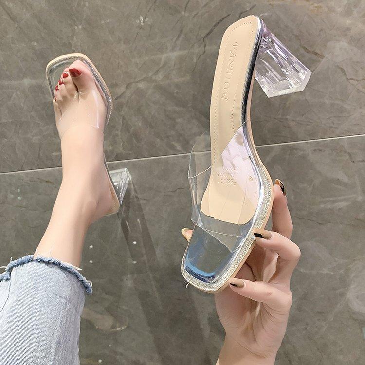 Женские прозрачные босоножки на высоком каблуке, летние новые дизайнерские туфли со стразами, женские модные повседневные тапочки Zapatos De Mujer — купить товар онлайн с бесплатной доставкой по всему миру!