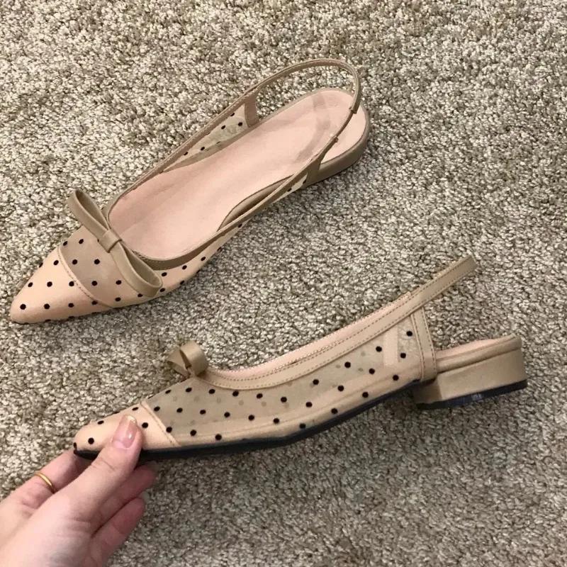 Женские сандалии на плоской подошве Baotou, дышащие сандалии с бантом, модные летние женские туфли на низком каблуке с острым носком