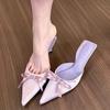 Новые шелковые женские шлепанцы с узлом-бабочкой, сандалии, туфли-лодочки на высоком каблуке с острым носком, женские туфли-сабо для зачистки, туфли на высоком каблуке