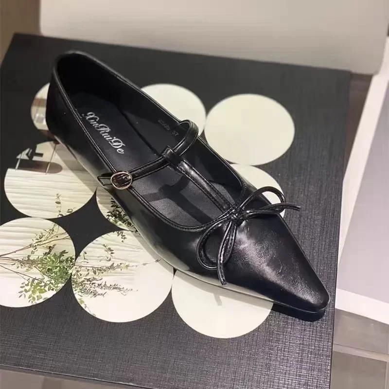 Универсальные туфли на низком каблуке с острым носком, летняя женская обувь, повседневные кроссовки с бантом на осень, новое платье, бабочка, осень