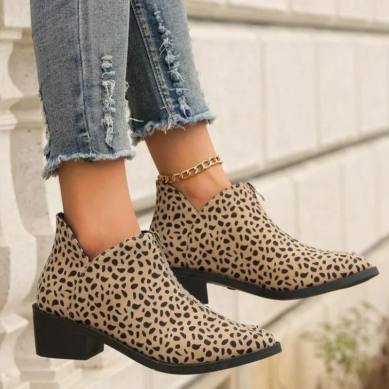 Новые женские ботинки на осень/зиму, большие короткие ботинки с леопардовым принтом и молнией спереди на квадратном каблуке, Zapatillas Muje Plus Size42