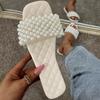 Весна/лето новые женские универсальные повседневные тапочки со стразами и жемчугом модные однотонные туфли на плоской подошве сандалии