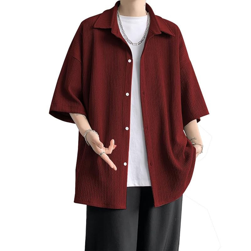 [Дизайн] Мужская рубашка с трехмерным эффектом, которая выражает неровное ощущение с вертикальными полосами. Она создает непринужденное чувство стиля и создает атмосферу элегантности! Поверхность неровная, поэтому даже если вы вспотеете, она не прилипнет к коже, сохраняя сухость и комфорт.