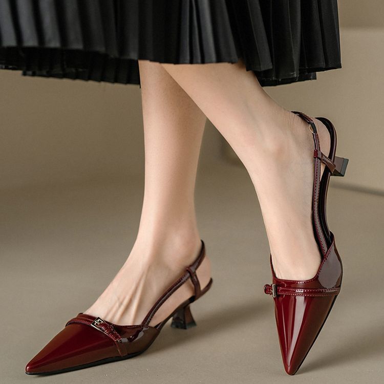 Босоножки Baotou женские летние лакированные кожаные туфли на среднем каблуке с острым носком французского темперамента на маленьких высоких каблуках пустые одинарные туфли — купить товар онлайн с бесплатной доставкой по всему миру!