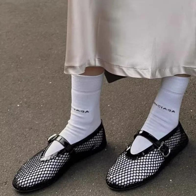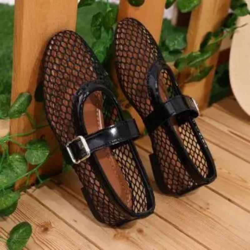 Сетчатые черные балетки женские летние новые плоские полые сетчатые дышащие одинарные туфли сетчатые туфли сандалии