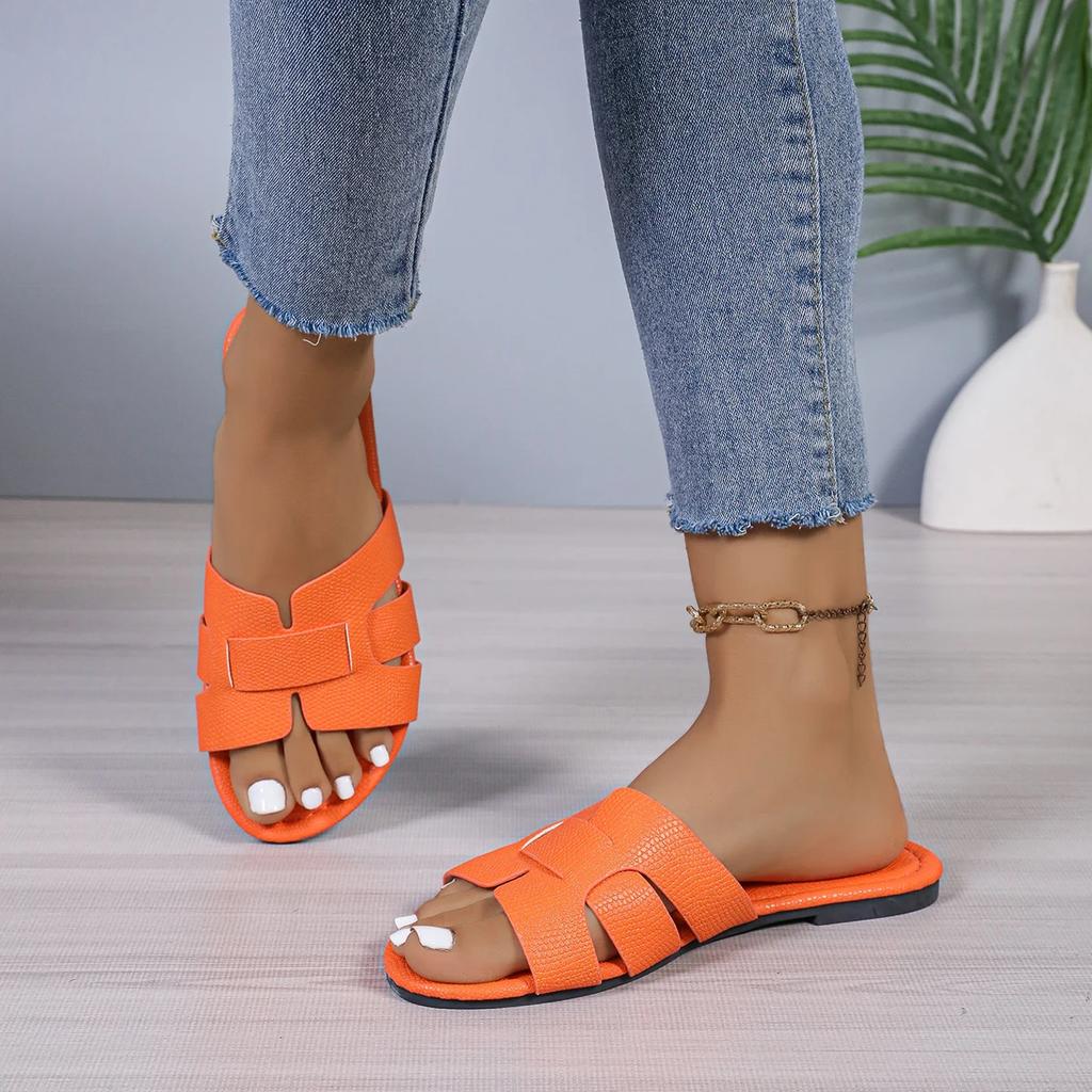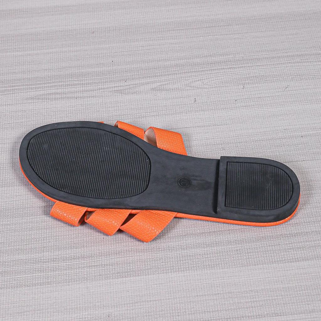 Женские оранжевые тапочки на плоской подошве, сандалии с открытым каблуком, пляжная обувь с круглым носком, повседневная легкая обувь