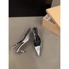 Серебряные туфли на высоком каблуке с острым носком и сумкой на голове, босоножки сказочной формы, весенние и осенние туфли с французским задником, пустые одинарные туфли