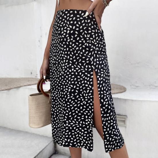 Характеристики: Точечный принт, боковой разрезной подол, обернутый бедрами