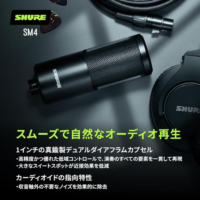 [Clear and Natural Audio Reproduction] With a 1-inch brass dual-diaphragm capsule*, SM4 captures clear, balanced bass and smooth, delicate highs.A large "sweet spot" reduces proximity effects, and a uniform cardioid polar pattern effectively eliminates unwanted off-axis noise.*Dual diaphragm capsule = part in the center of the microphone that collects sound