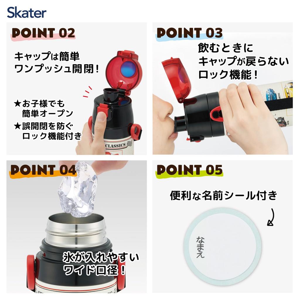 Skater Бутылка для воды из нержавеющей стали для питья 470 мл, чашка для питья 430 мл, легкая, типа Disney Cars 25, для мальчиков, термоизолированная, спортивная