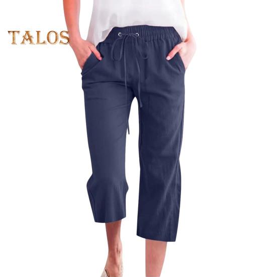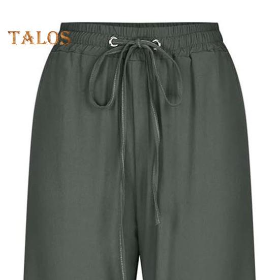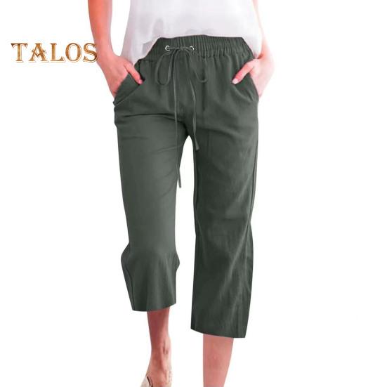 Представляем наши женские укороченные брюки, которые станут обязательным дополнением к вашему гардеробу.. Эти однотонные брюки выполнены в повседневном и дорожным стиле, который легко дополнит ваш образ.. Уникальный дизайн этих льняных брюк включает в себя микроэластичную ткань, обеспечивающую комфорт и подчеркивание фигуры.. Эти брюки со свободным силуэтом, эластичным поясом и затягивающимся шнурком на высокой талии обеспечивают одновременно стиль и комфорт.