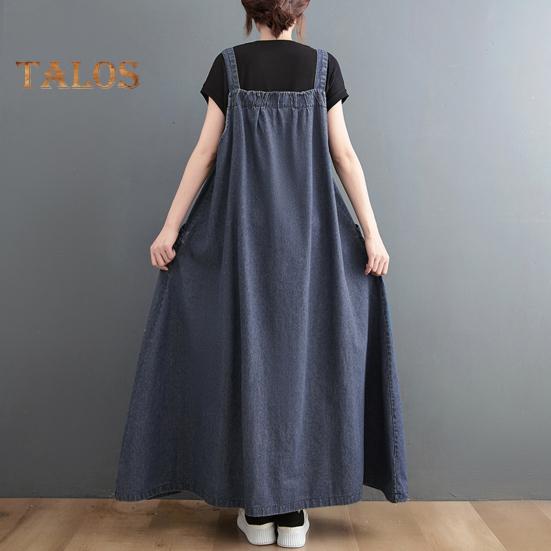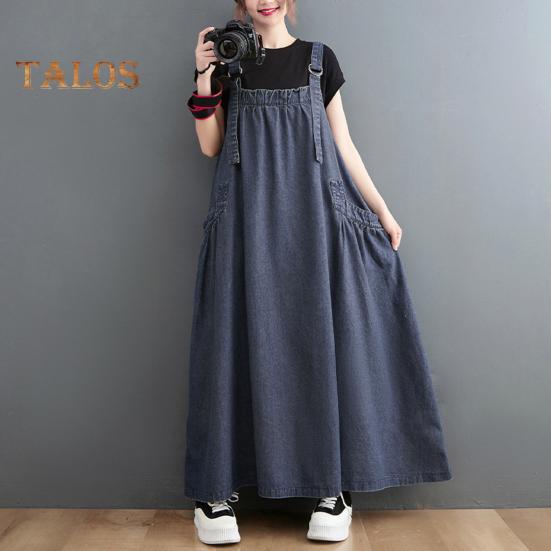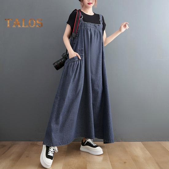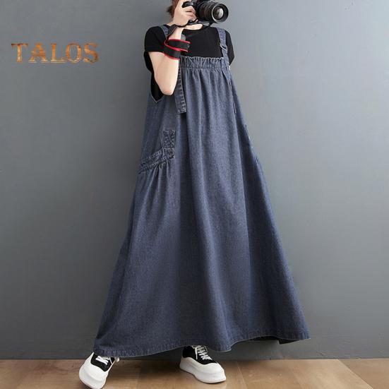 Представляем джинсовый комбинезон — универсальное дополнение к вашему гардеробу.. Эта длинная юбка отличается свободным кроем и плиссированными деталями, что создает стройный и модный образ.. Это платье, изготовленное из мягкого и легкого полиэстера, обеспечивает удобную посадку, которую не захочется снимать.. Повседневный свободный крой средней длины излучает ретро-шарм, идеально подходит для повседневной носки, пляжных прогулок или вечеринок..