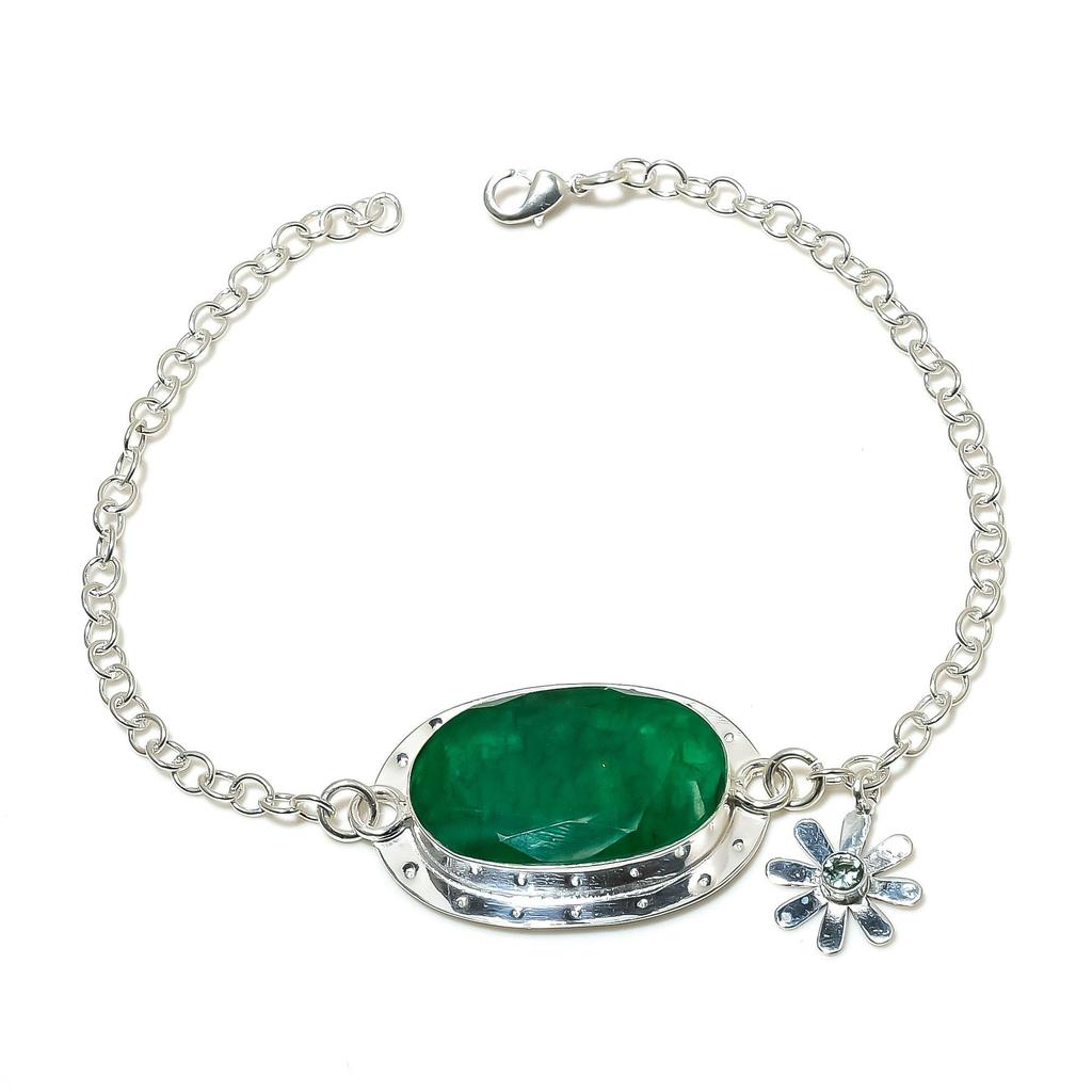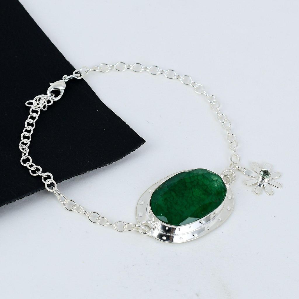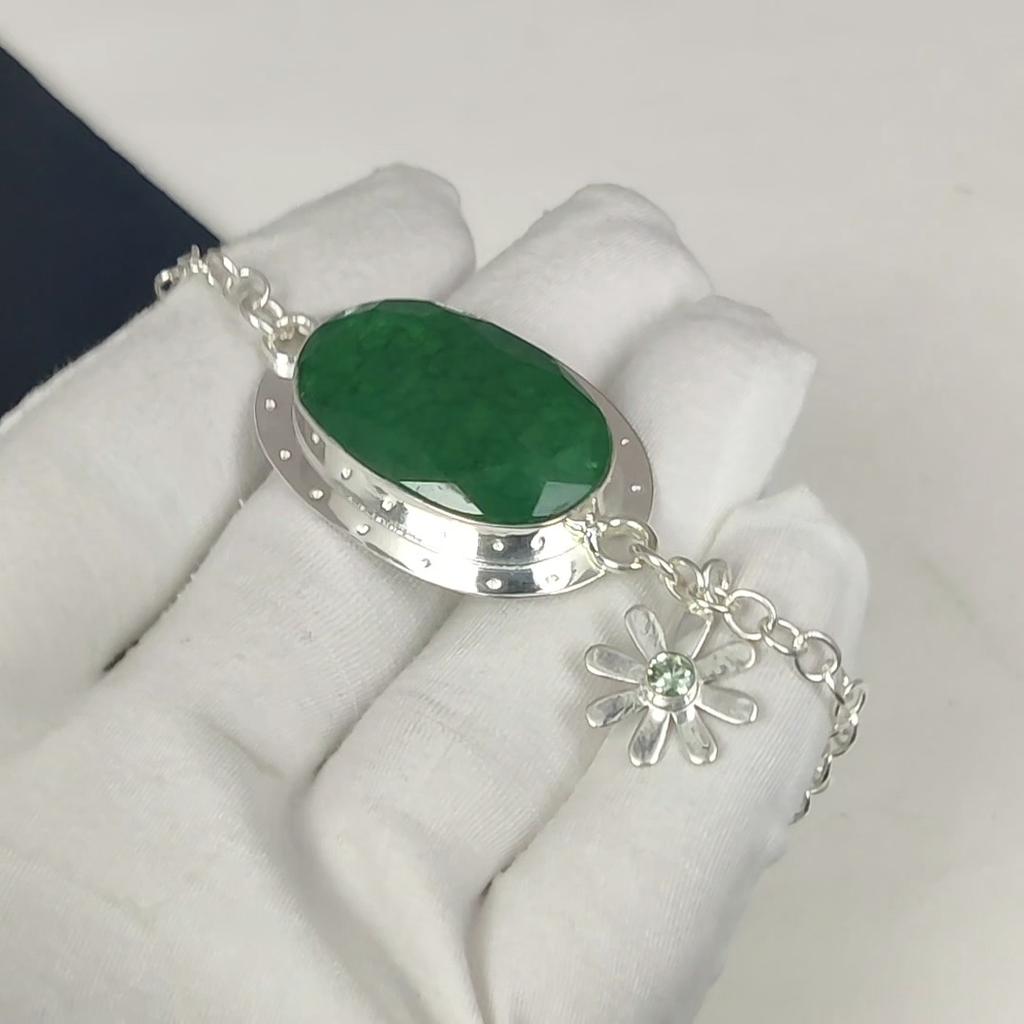 Браслет из натурального зеленого апатита ручной работы из стерлингового серебра 925 пробы, изумрудный браслет для жены, браслет унисекс, подарок на вату