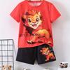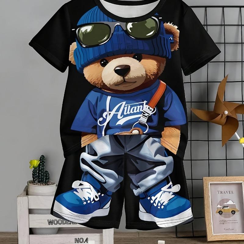 Мужская одежда из 2 предметов для мальчиков с забавным принтом медведя из мультфильма, короткий рукав, футболка, шорты, комплект, летний активный стильный образ для мальчиков
