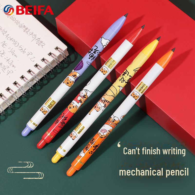 Четырехцветные автоматические карандаши Beifa с бесконечным письмом и металлическим держателем — милый мультяшный дизайн для учеников начальной школы