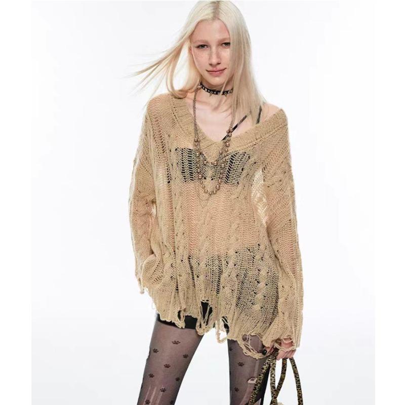 Сексуальные прозрачные ажурные трикотажные свободные рубашки женские весенние новые модные однотонные повседневные блузки с V-образным вырезом женские летние тонкие элегантные женские рубашки топы 26576