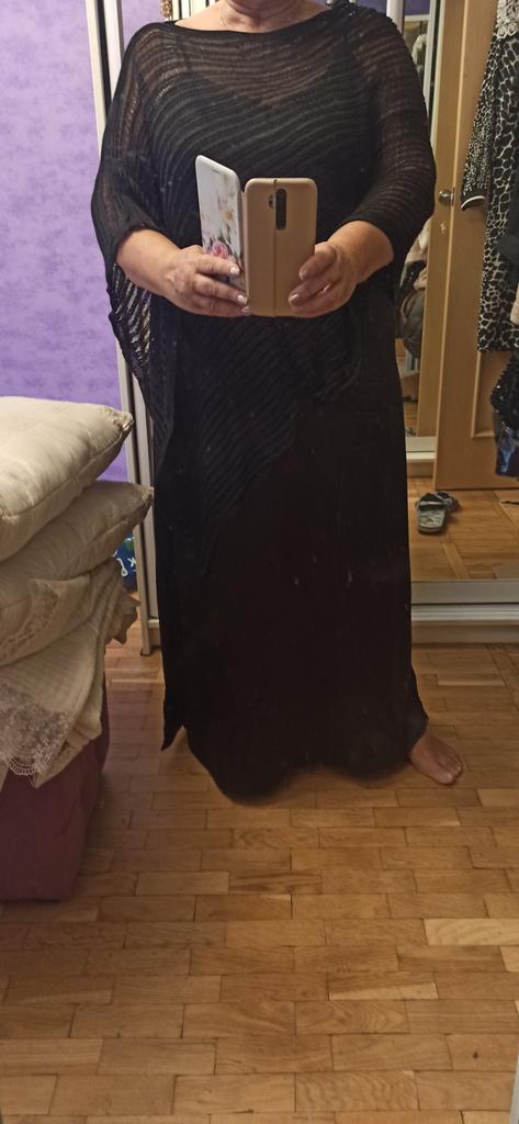 Получила, расстроилась, думала шарф зашитый с одной стороны. В отверстие вставила голову и ткань удивительным образом растянулась. Вроде пончо получилось ажурное. Может когда и одену