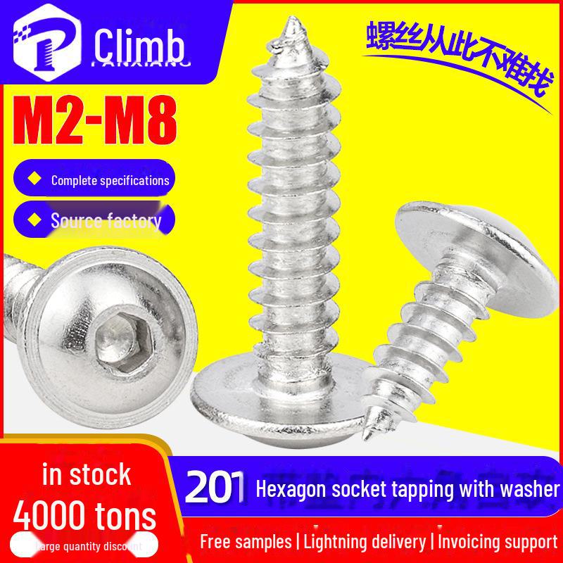 Винт самонарезающий шестигранный из нержавеющей стали 201 с шайбой, полукруглая головка, размеры M3/M4/M5