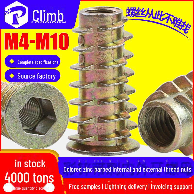 Цветные оцинкованные шестигранные гайки с внутренней/наружной резьбой и зазубренными вставками для мебельного соединения M5/M6/M8