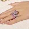 Роскошный комплект из 2 колец с розовыми камнями серебристого цвета, обручальное кольцо, украшения на День святого Валентина