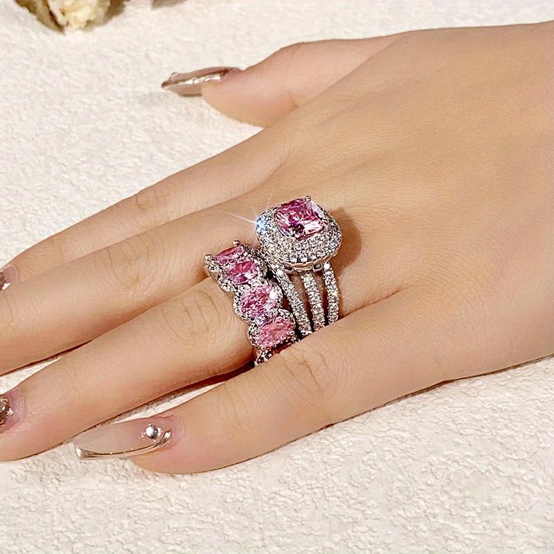 Роскошный комплект из 2 колец с розовыми камнями серебристого цвета, обручальное кольцо, украшения на День святого Валентина — купить товар онлайн с бесплатной доставкой по всему миру!