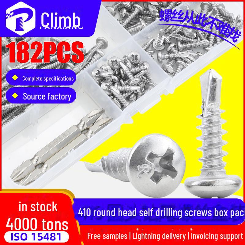 Набор винтов из нержавеющей стали 410 с крестообразным шлицем и круглой головкой, с винтами с полукруглой головкой и саморезами для сверления с зенковкой