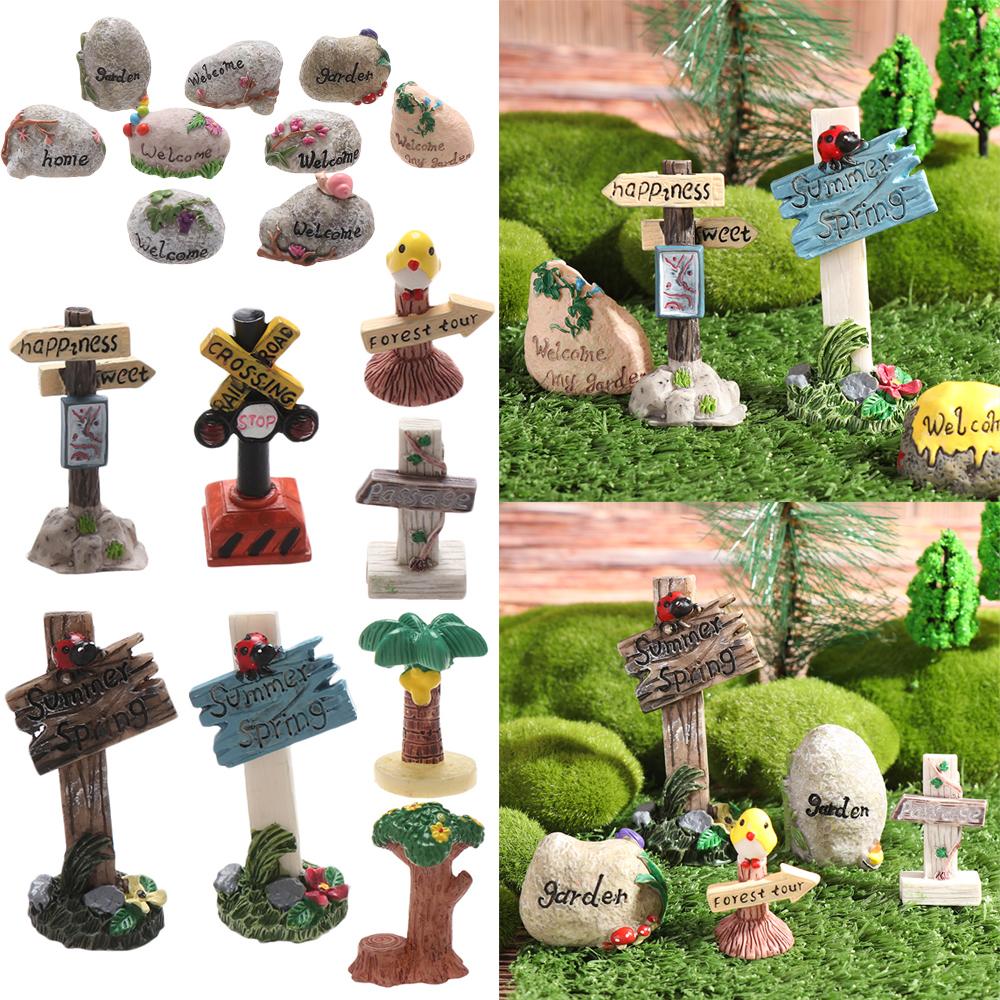 Succulents Bonsai Mini Road Sign Simulation stone signpost Welcome Stake Figurine Fairy Garden