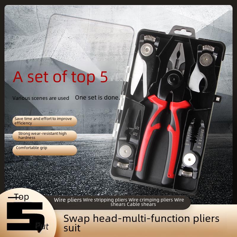Набор многофункциональных плоскогубцев «пять в одном»: Сменные кусачки, тиски, стриппер