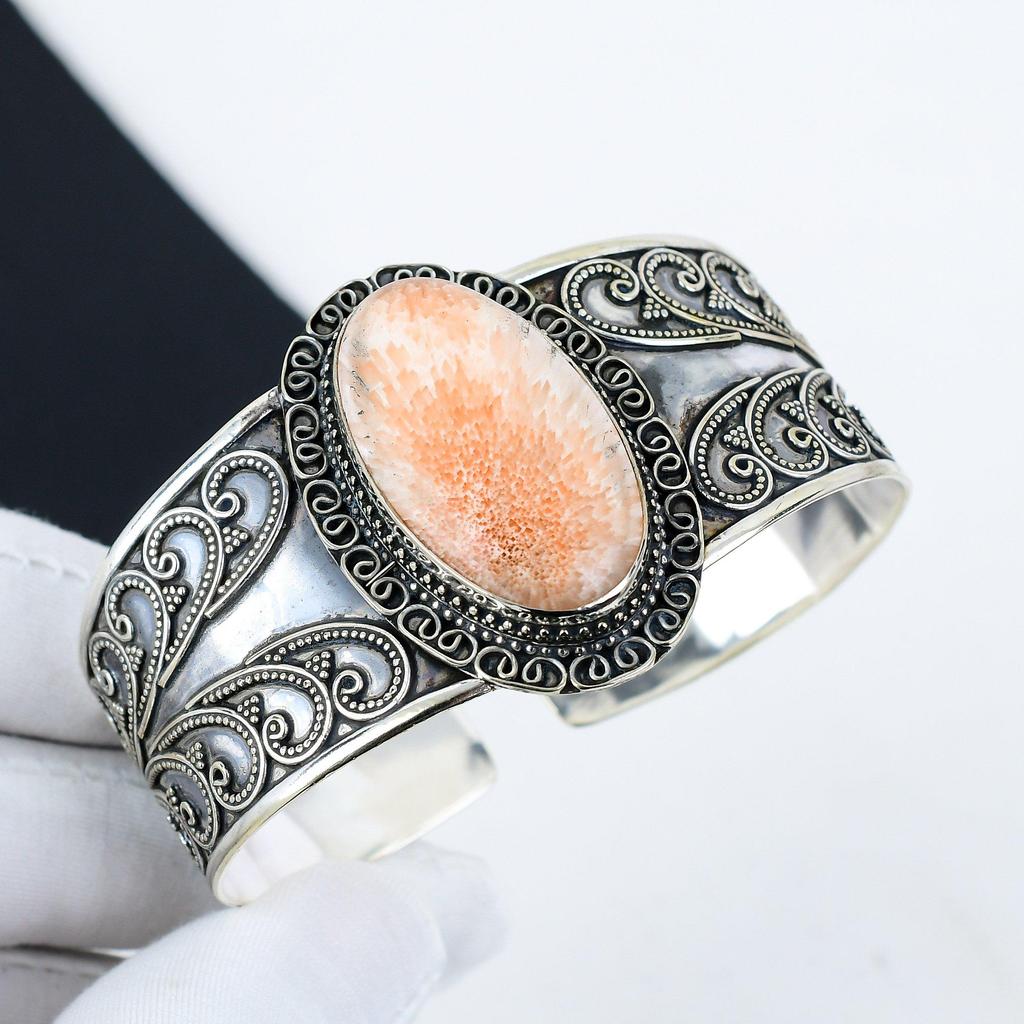 Натуральный оранжевый сколецит драгоценный камень ручной работы браслет-манжета из стерлингового серебра 925 пробы, браслет с оранжевым сколецитом, для жены, унисекс браслет, подарок для нее