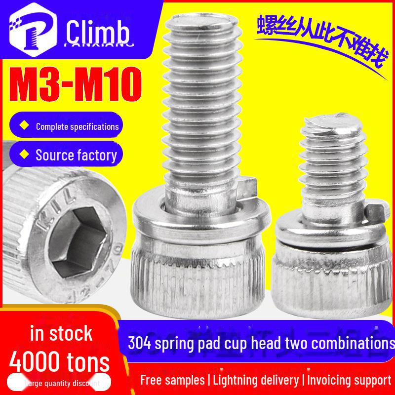 Болт с шестигранной пружинной шайбой из нержавеющей стали 304, полукруглая головка, M4/M6
