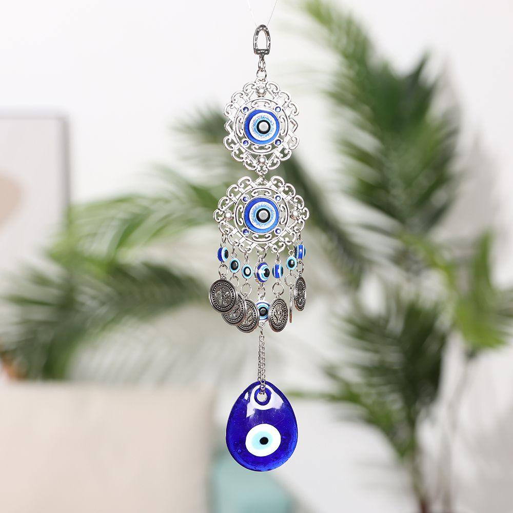 Horseshoe with Elephant Car Pendant Glass Decoration Butterfly Evil Eye Hanging Ornament Navy Blue