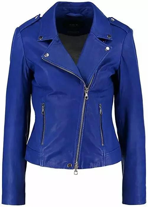 Женская синяя куртка из натуральной овчины ручной работы стильная байкерская мотоциклетная — купить товар онлайн с бесплатной доставкой по всему миру!