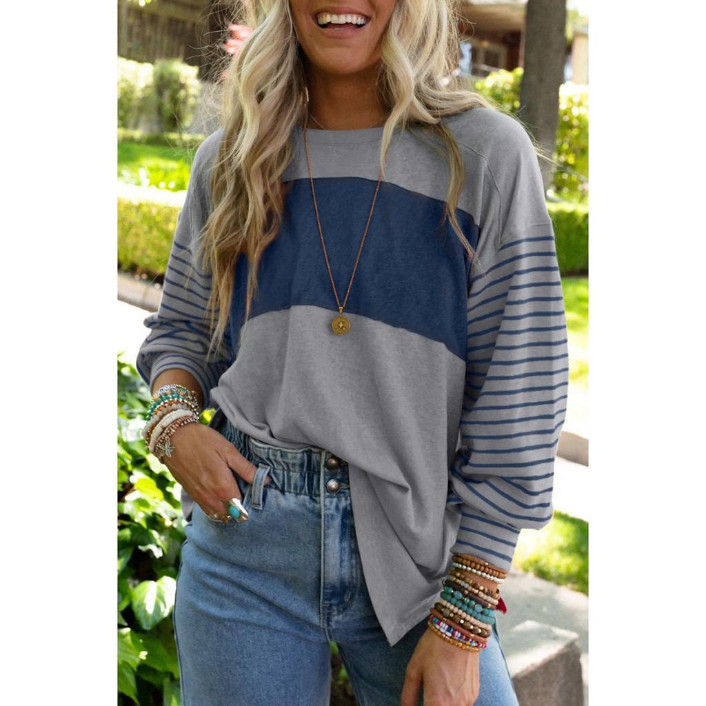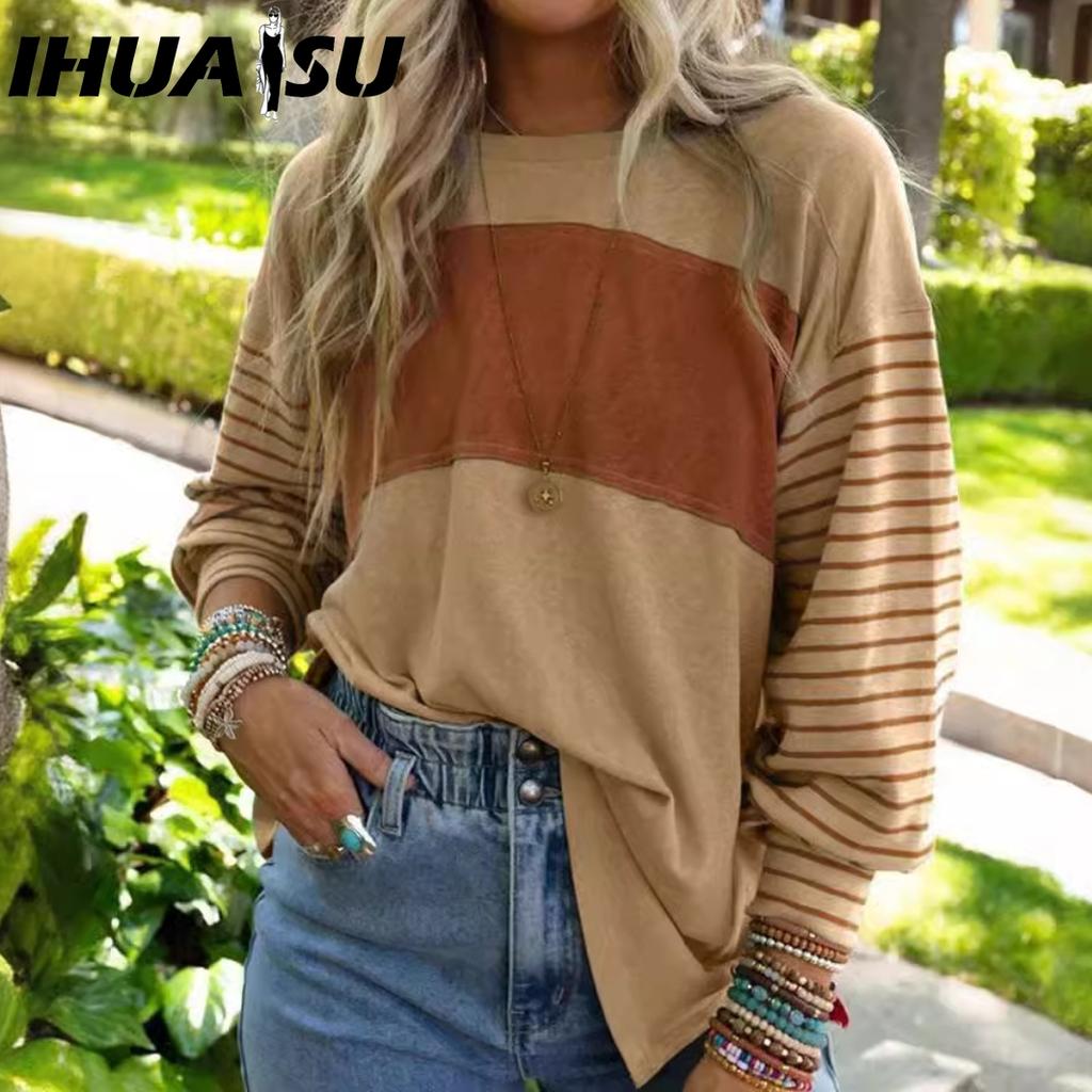 IHUASU Женский свитер с круглым вырезом, повседневная полосатая цветная футболка с длинным рукавом, весна-осень