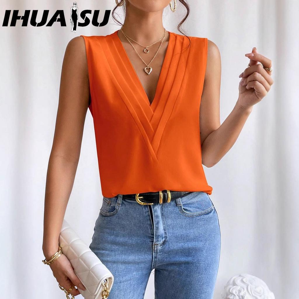 IHUASU Женская летняя майка-топ с V-образным вырезом, однотонная