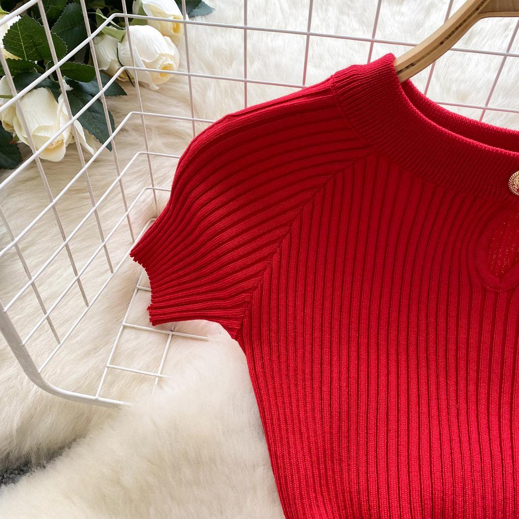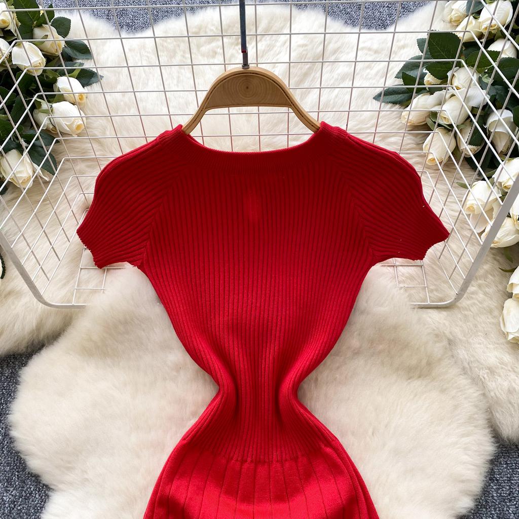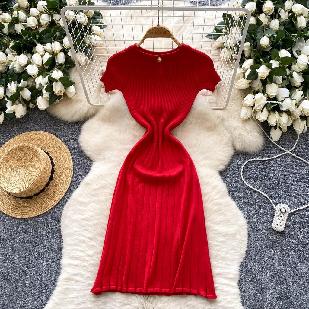 Новое китайское национальное модное трикотажное мини-платье с пряжкой, облегающее, легкое, роскошное, элегантное, короткое, красное платье