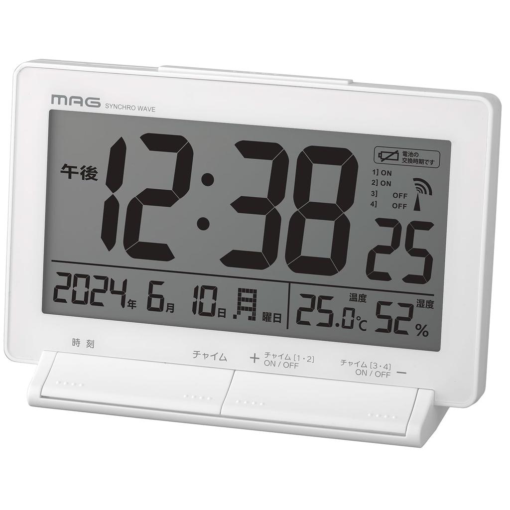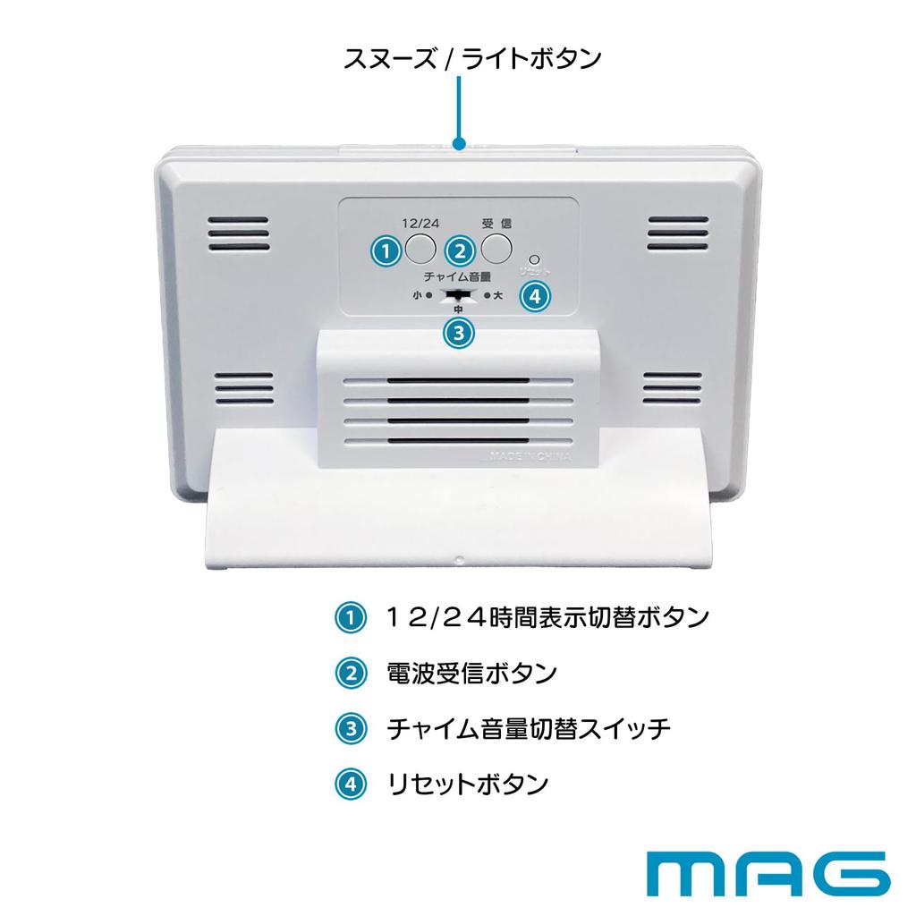 MAG Настольные часы Цифровые радиочасы Программируемый звонок 4 раза Свободная настройка Переключатель громкости Термометр Гигрометр Температура и гигрометр Календарь Подсветка