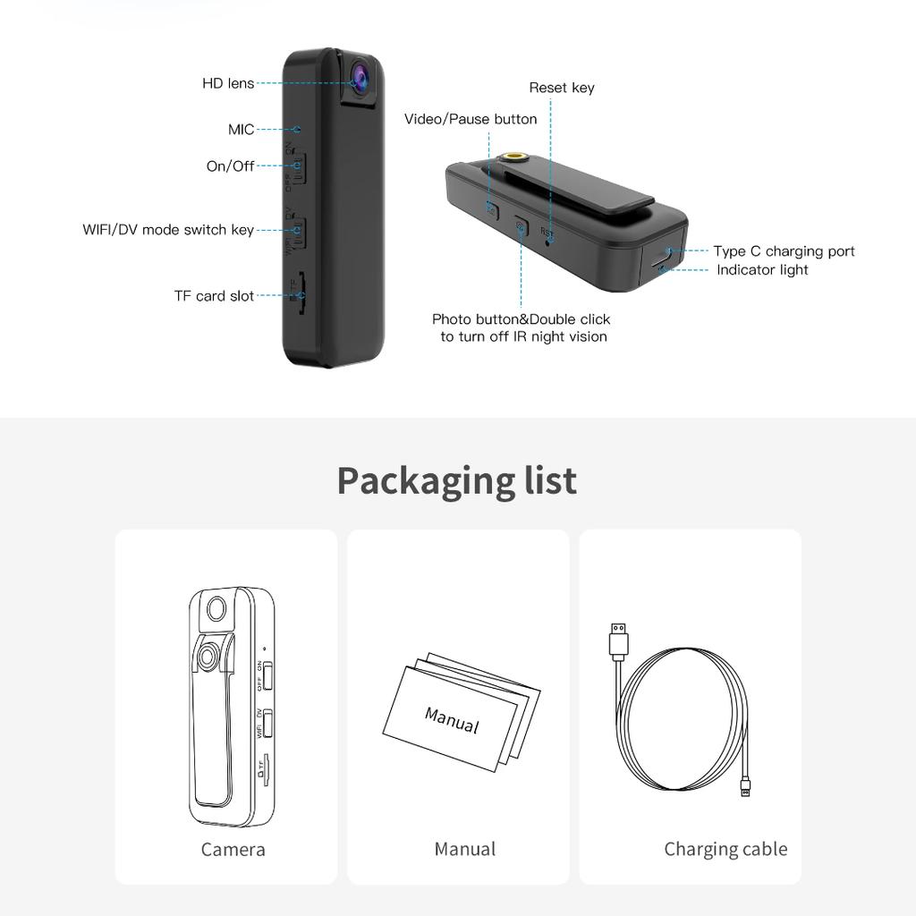 Четкость высокой четкости: Запечатлейте каждую деталь с разрешением 1080p Full HD нательной камеры. Независимо от того, используется ли эта камера профессионально или в личных целях, каждый кадр будет записан с кристальной четкостью, что делает ее идеальной для запечатления важных моментов.