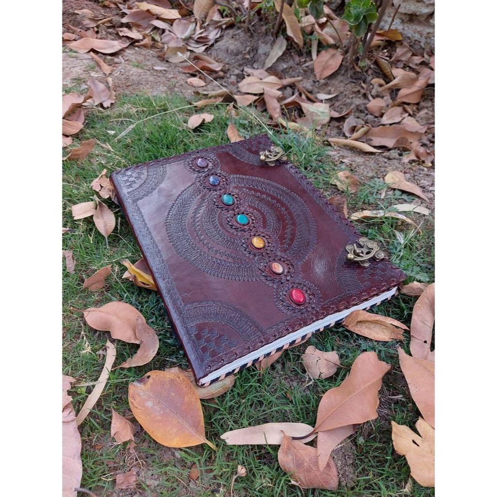 Кожаная Книга-журнал Seven Chakra Средневековая Каменная Тисненая Книга Теней Ручной Работы Блокнот Путешествующая Книга Скетчбук Подарок на День Рождения
