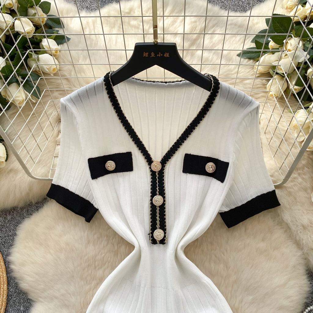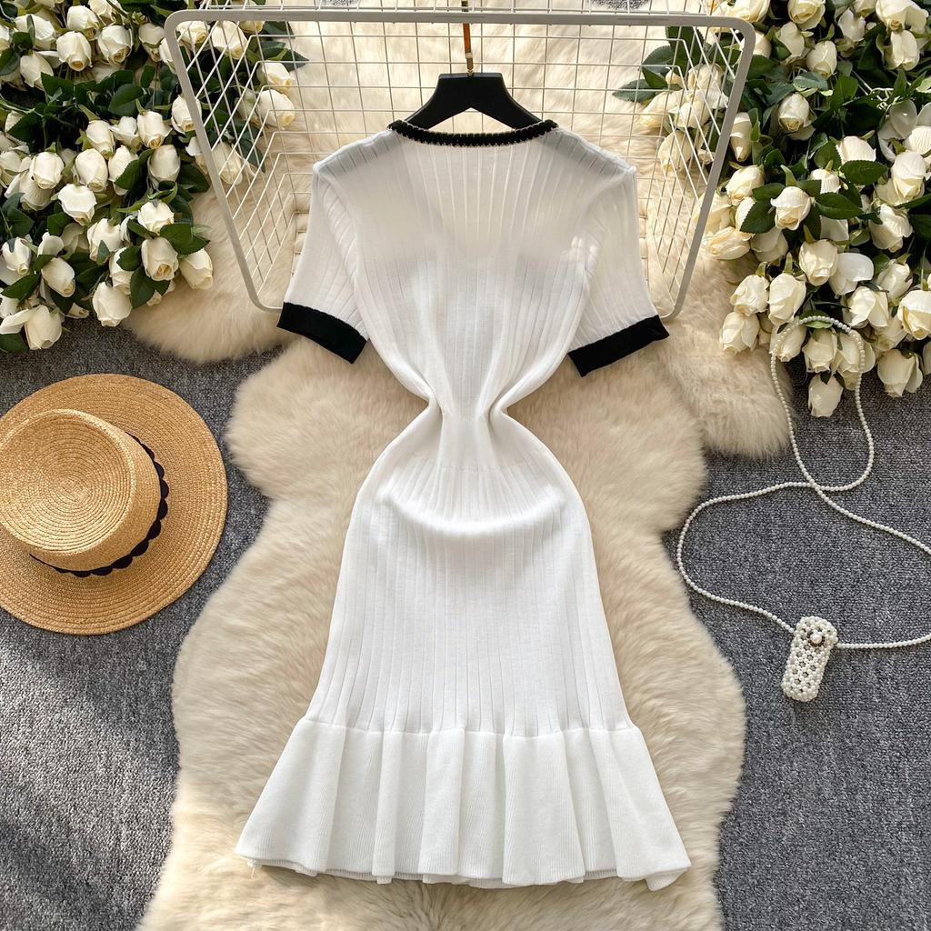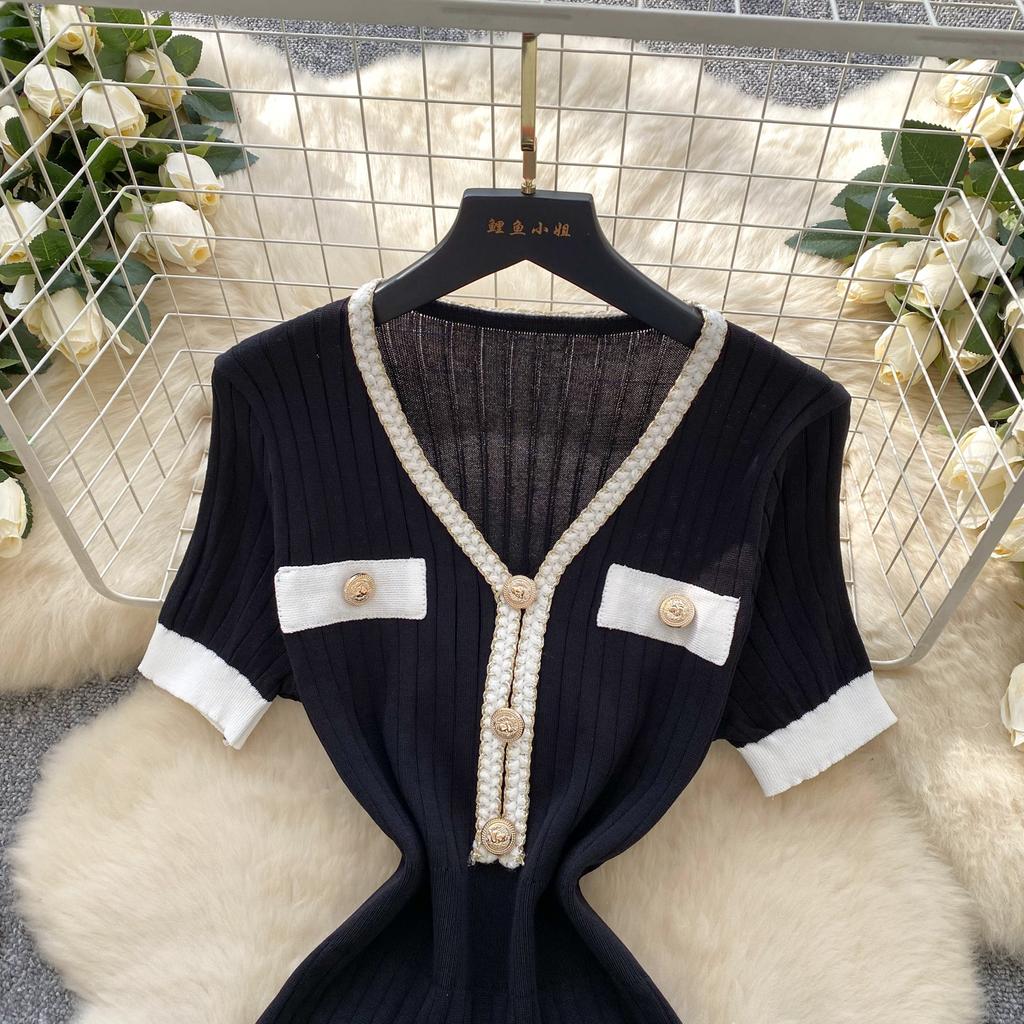 Летний женский трикотажный свитер с V-образным вырезом, мини-короткий, платье-пуловер с принтом «рыбий хвост»