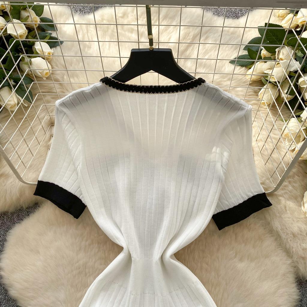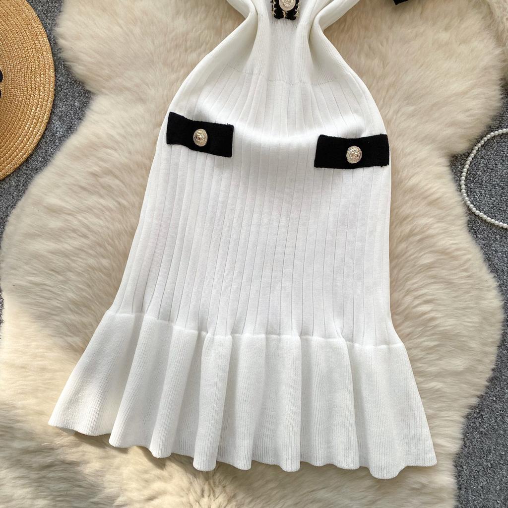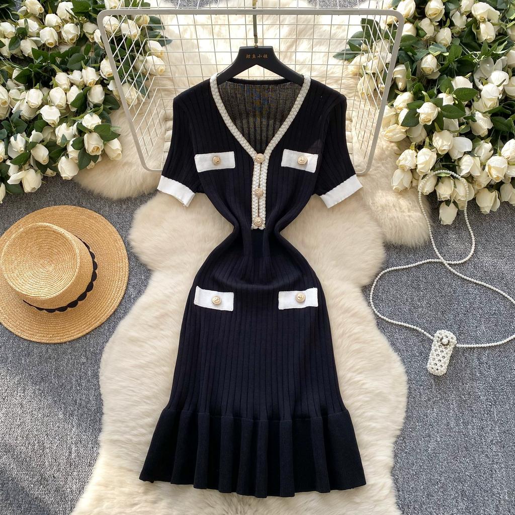Летний женский трикотажный свитер с V-образным вырезом, мини-короткий, платье-пуловер с принтом «рыбий хвост»