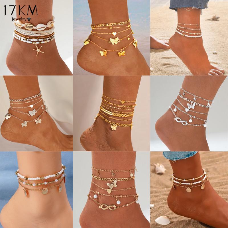 17KM Ретро браслет на ногу с бусинами для женщин, модный браслет ручной работы с ракушками и бабочками на ногу, богемный летний пляжный ювелирный подарок