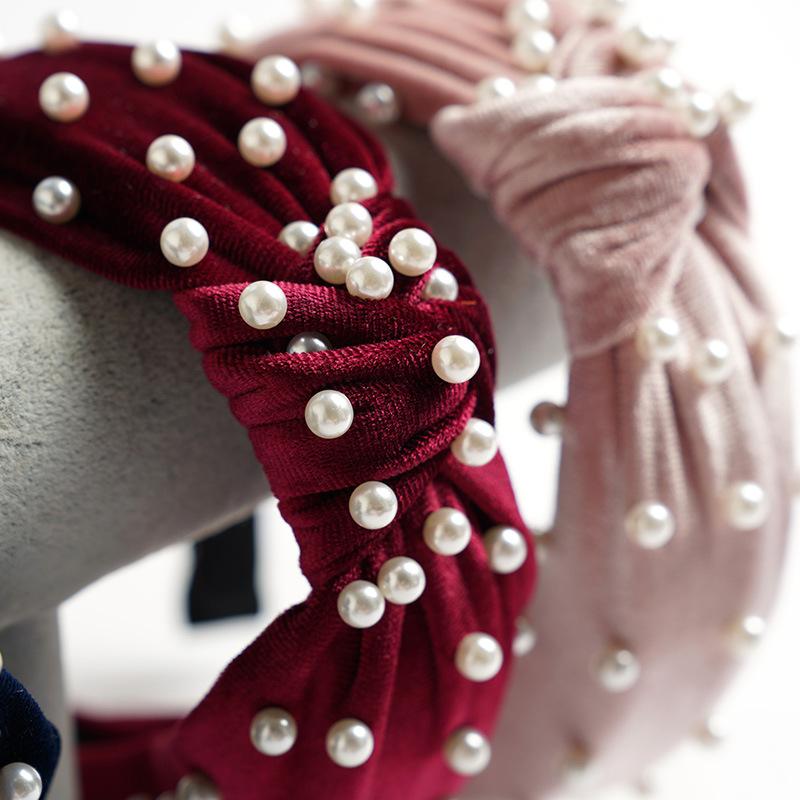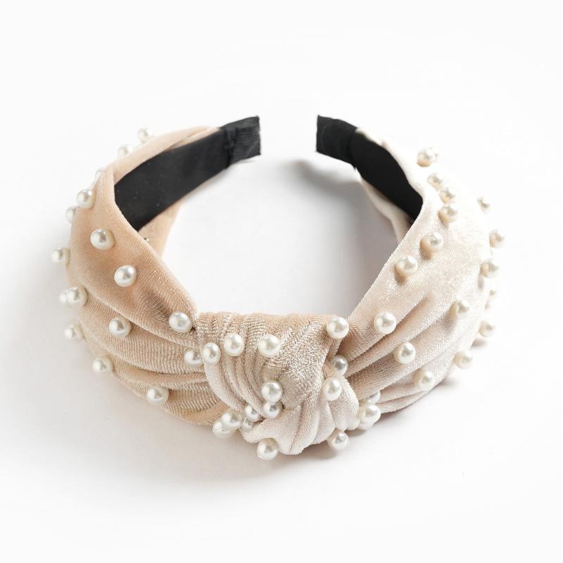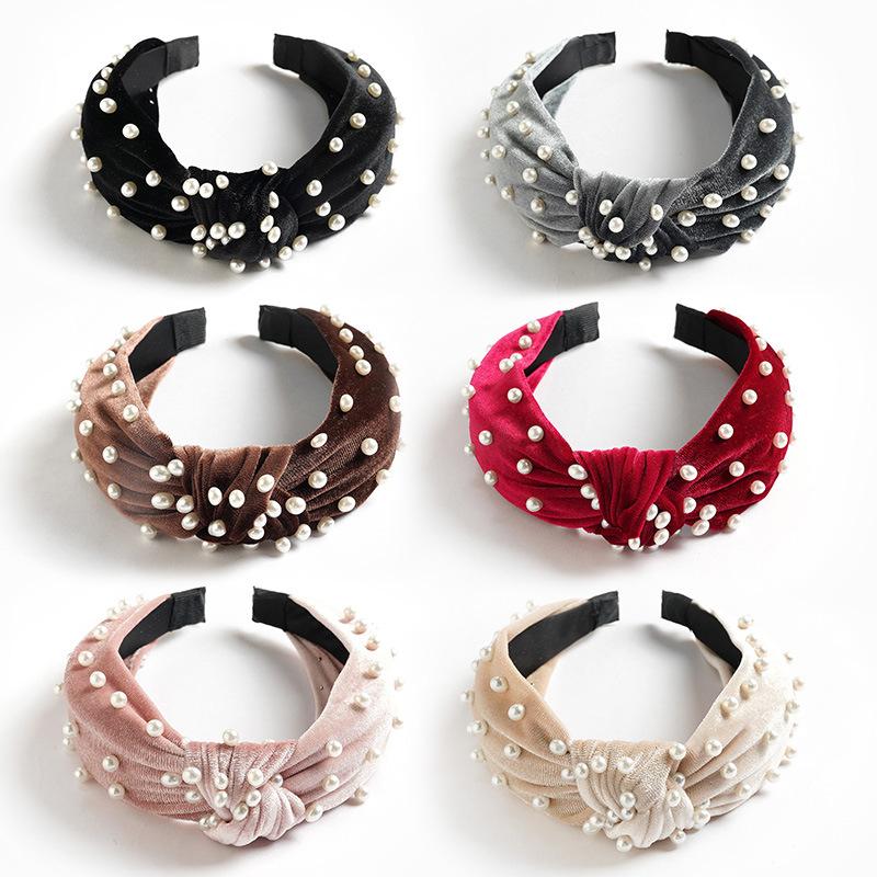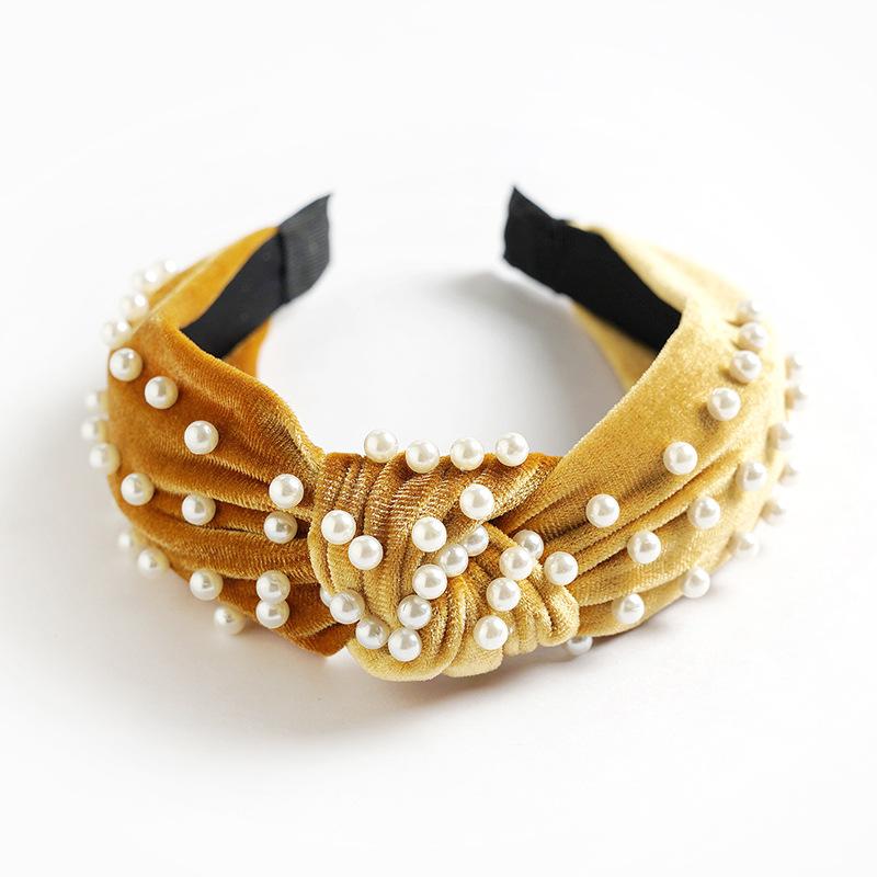 Желаю Ebay Золотая бархатная повязка на голову с жемчужинами и бисером