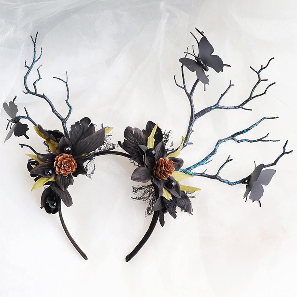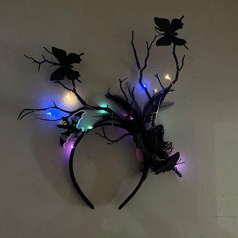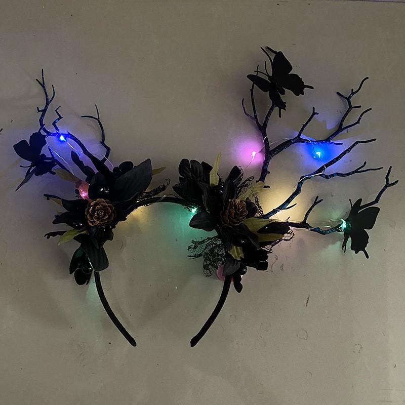 Хэллоуин Темные Ветки Черная Бабочка Головная Повязка Светящаяся Головная Повязка Рождественский Цветочный Головной Убор Девушка Фото Реквизит