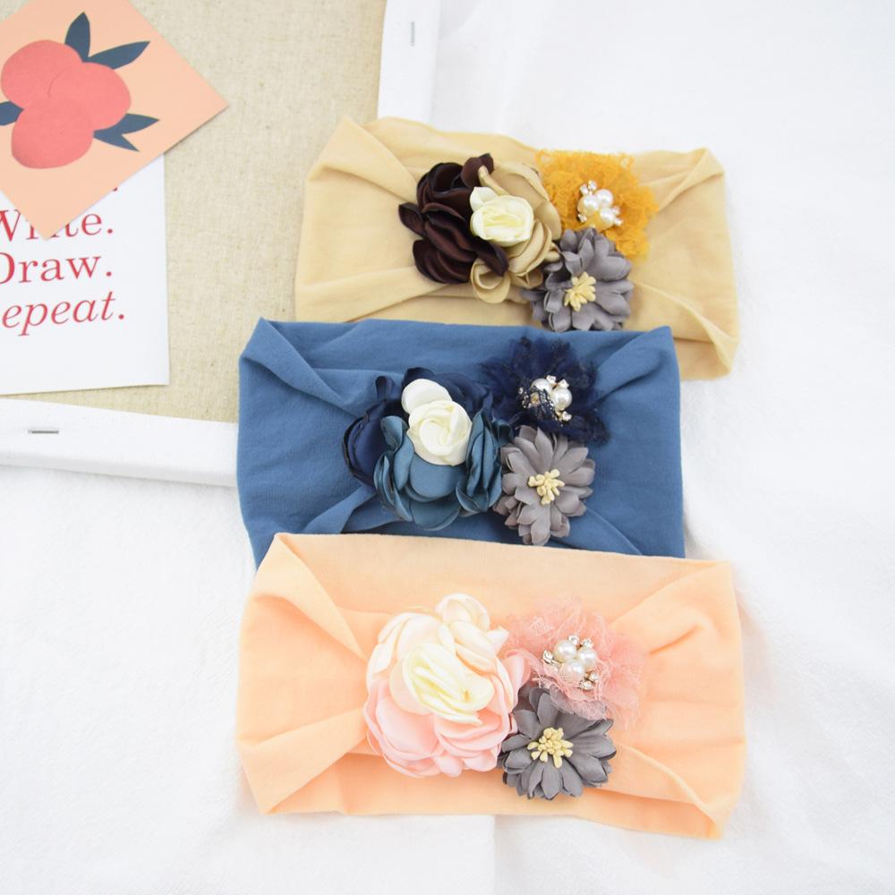 Ткань Сращивание Цветок Нейлон Головной Убор Детские Аксессуары Для Волос Детская Повязка На Голову Мягкая Детская Повязка На Голову Чулки Повязка На Голову