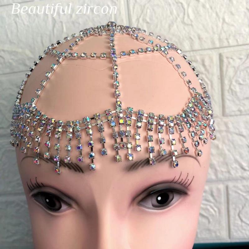 Модные аксессуары для волос, полные бриллиантов, персонализированные сетчатые головные уборы с бахромой и стразами, женская модель, универсальные трендовые украшения