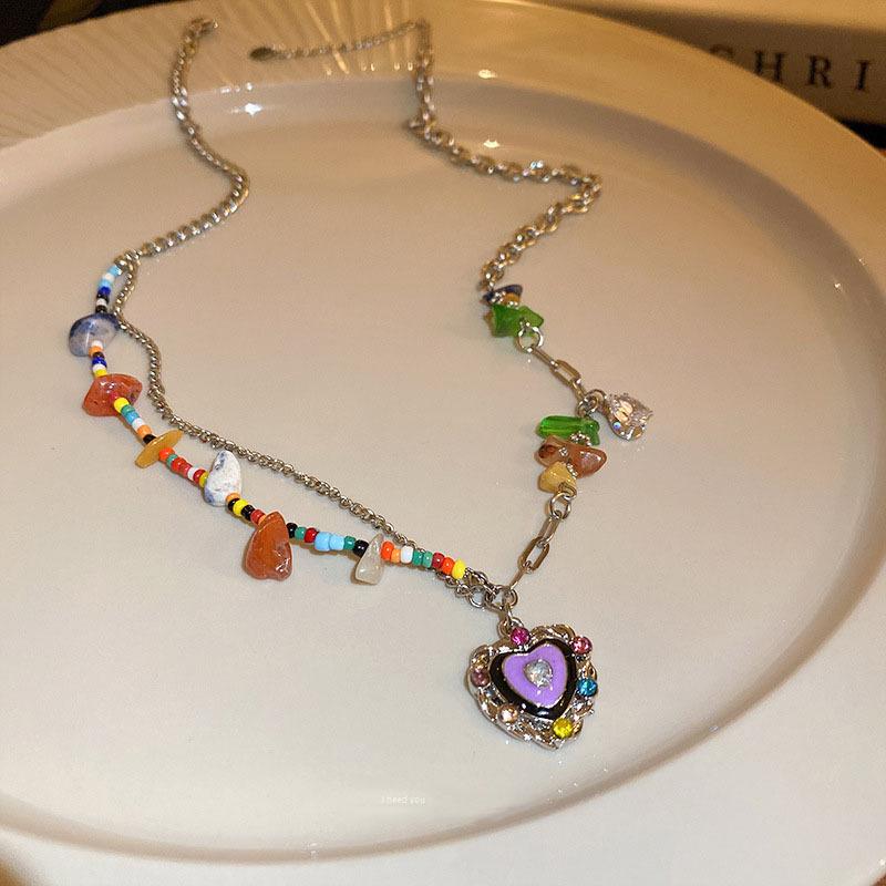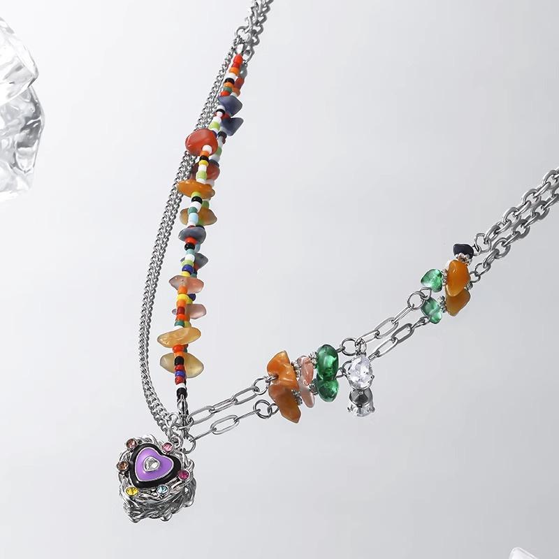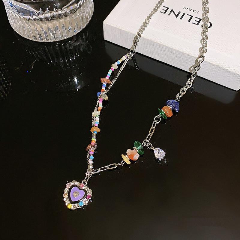 iF ME Бохо красочные бусины фиолетовое сердце кулон ожерелье для женщин девушка нерегулярные натуральный камень ключица цепочка Y2K ювелирные изделия аксессуары