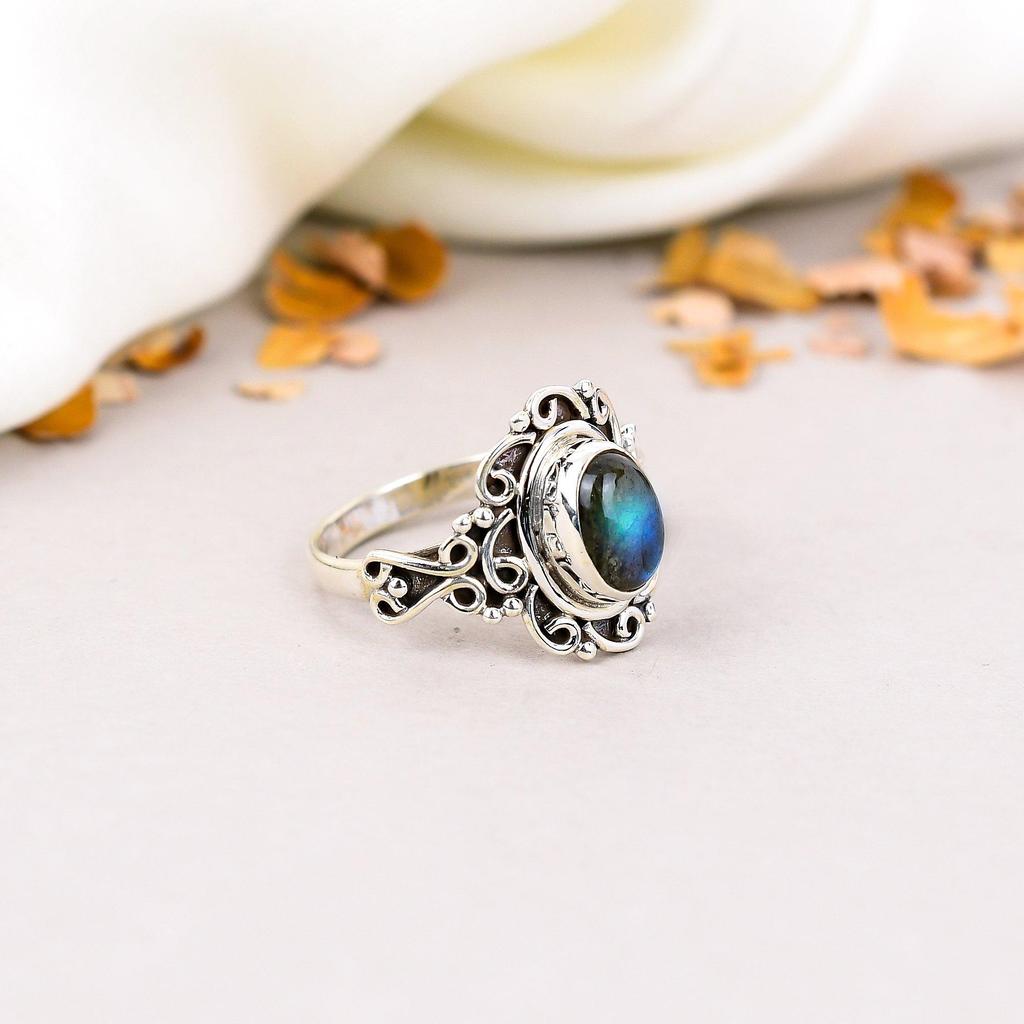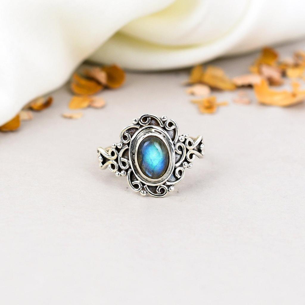 Кольцо ручной работы из серебра 925 пробы с лабрадоритом и овальным драгоценным камнем в стиле бохо для женщин