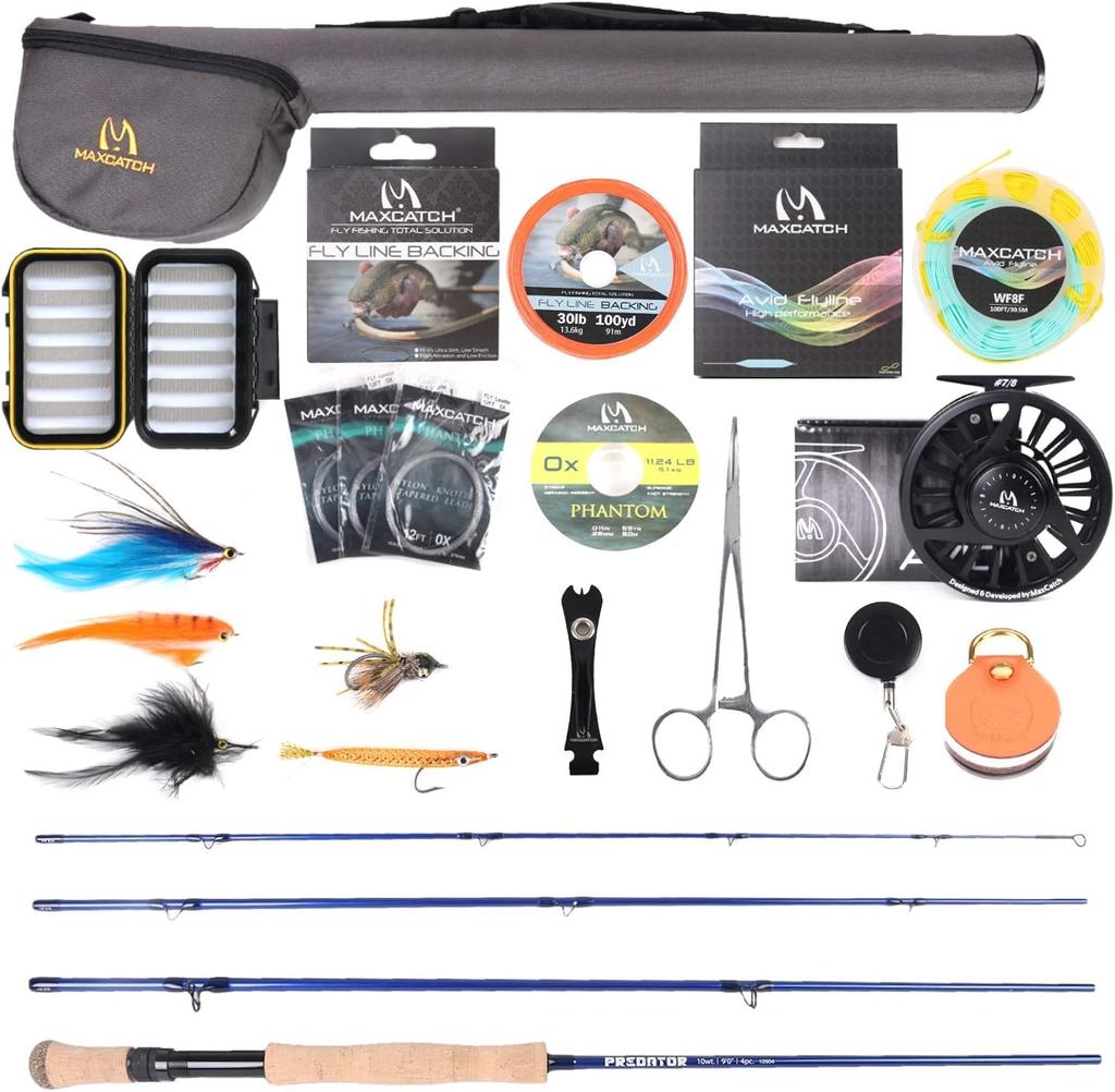 M MAXIMUMCATCH Maxcatch Predator Sea Fishing Set Fly Rod Aiming Big Fish Saltwater Fly Rod Combo Weight 9ft 4 Freshwater/Saltwater (4 шт) (8