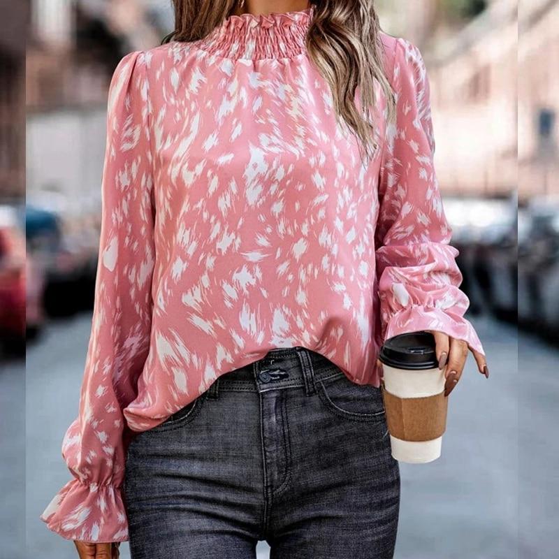 Топы с принтом зебры, модная женская одежда, темперамент, элегантные рубашки, блузка с длинным рукавом и высоким воротником, свободная офисная рубашка 24644